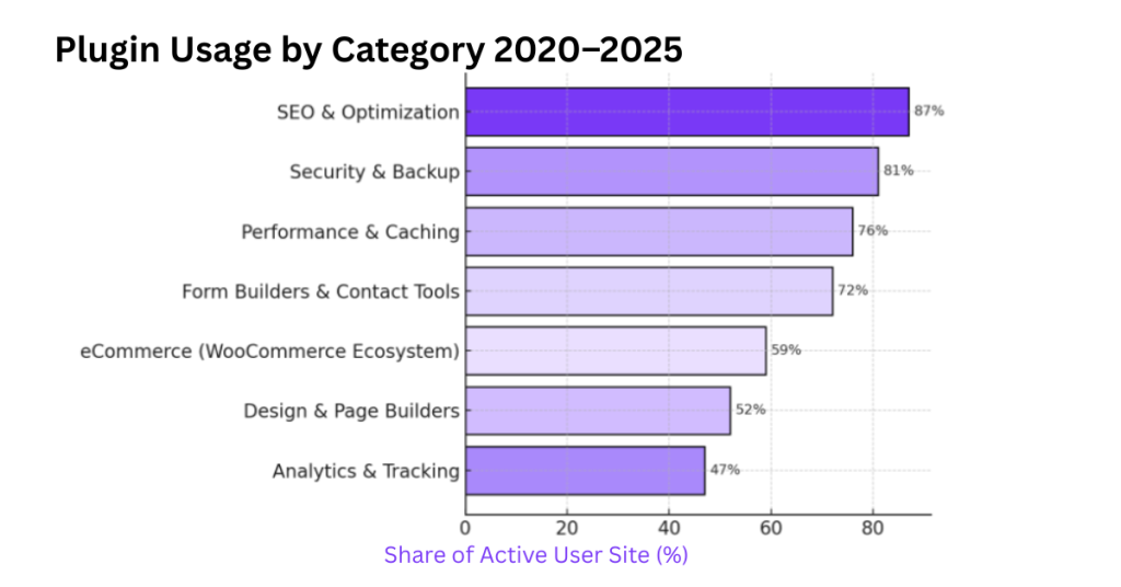 | Plugin Category | Share of Active Sites (Approx.) | Examples |